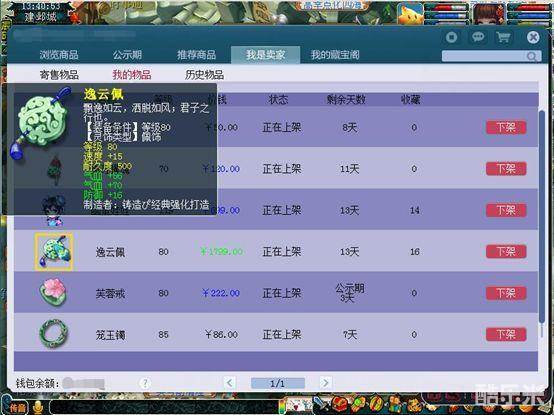 看完武器装备,我们看看灵饰,这一件80佩饰,主加速度,还带双气血和防御,都是些主要属性,价格摆1799,还有16人收藏呢;