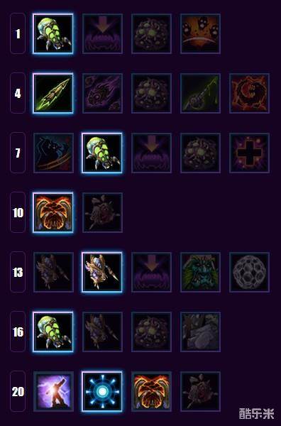 淬毒骨刺(第二层):普通攻击范围提高20%并在3秒内额外造成19(+4每级)伤害,持续3秒。