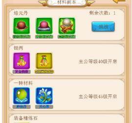 当玩家的等级达到38级后,就可以开启材料副本了,不过此时只可以挑战最基本的培元丹关卡,之后会根据玩家的等级情况,陆续开放更多的材料副本关卡。