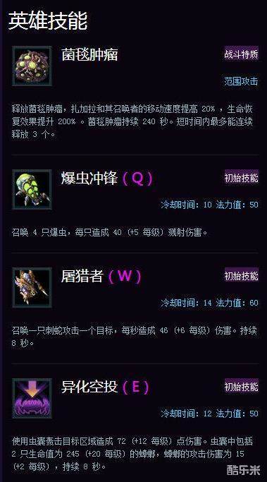爆虫冲锋的释放和伤害类型与很多英雄的一技能非常相似,需要预判,毒爆虫释放后会向前冲锋一段距离,在冲锋的路上还可以被打爆,这点需要注意,不然就会浪费了10秒的冷却时间。