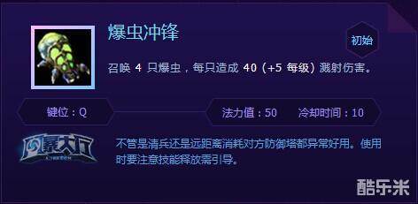 爆戮场:8个爆虫很好用,推线推塔伤害很足,打团时向人堆里放也有很高的伤害。唯一的缺点是硬直时间更长了,所以最好躲远点放