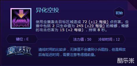 E技能的施法延迟导致这个技能需要很好的预判,不过这个技能最主要的作用是招出的两个小蟑螂来消耗炮弹或是辅助输出以及打断地图元素的收集。超远的释放距离使这个技能的释放相对安全。