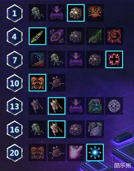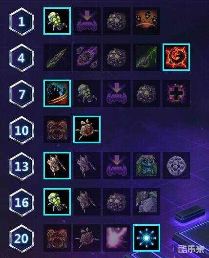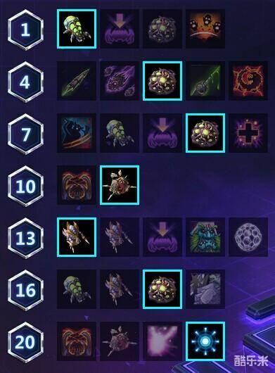 这套是LZ最喜欢用的推塔流,在除了鬼灵矿的任何地图上都有良好的发挥。其中4级天赋不喜欢感染可以点淬毒,13级点飞龙也是看中了它的弹射伤害。而20级在优势情况下可以加强大招来增强推线能力