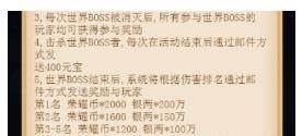 根据玩家对BOSS造成的输出伤害进行排名,伤害越高的玩家最终得到的奖励也就越丰厚,击杀了BOSS的玩家还会有额外的惊喜大奖哦。