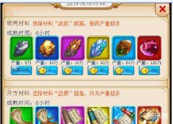 玩家在这里主要是炼制银两以及丹方两种材料,花费不同数量的元宝购买不同的材料,最终炼制得到的材料数量也是不一样的。