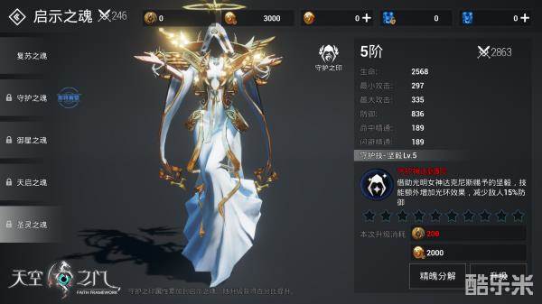先来介绍下启示之魂,她分为五阶,分别对应的是复苏之魂、守护之魂、御星之魂、天启之魂、圣灵之魂。随着等阶的提升,启示之魂都会发生蜕变,属性跃升、技能变强、形态也会发生变化,顺便说一句,每个形态都非常美,佩服美术大大。另外,启示之魂也有着冰霜、火焰、光明的区别,当然是根据各自职业信仰女神来区分的,下面来详细说明。