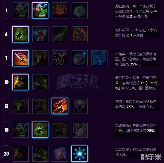 一些要注意的地方:前期吃线为主要,尽快叠BUFF是首选,猥琐是第一,张的本来就猥琐,不猥琐,你玩的就不是这个英雄。20级闪现为佳,R1技能的远程 释放同样可以带来可观的伤害,像水元素一样丢出去吧。良好的预判能力和想象力会让你觉得巫医真的很强。敌人会慢慢被你诅咒致死的。