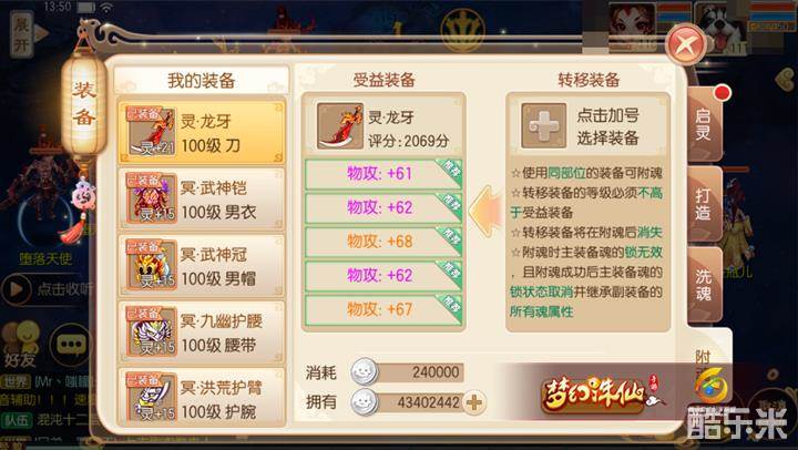 至于魂属性方面可以用给力来形容,虽然属性加成的值并不是最高,但五橙的法攻魂已十分耀眼,不过在培养时还得注意洗魂、附魂的搭配使用,不然以后会发现相同的付出,自己的收益却连别人的一半都没有。