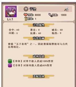 末将于禁,愿为曹家世代赴汤蹈火。这是镇魂街动漫里一句感动了不知道多少人的话,因此于禁在历史上降于关羽的恶名好像也变得不在那么严重。下面就来看看于禁在萌斗魏蜀吴里的属性吧。
