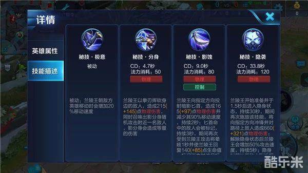兰陵王单体爆发能力非常高,但是在团战中也拥有不俗的伤害,是一个非常适合上分的英雄。