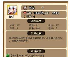 曹操生命值有168000,攻击有12000。命中抗暴破击均为800。3S角色正常的属性。
