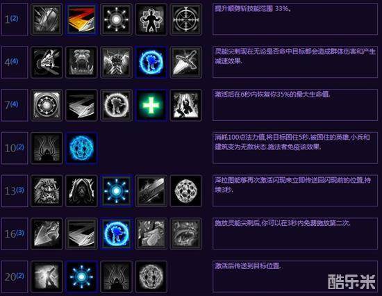 (说实话,我从来没点过这个天赋,这个天赋感觉有点华而不实,秀的成分很多,最实用的地方应该就是躲技能,逃跑的话,作用不是很大,躲躲山丘的锤子啊,诺娃的狙击啊,还好,蛋疼的地方就是,还得普攻才能激活这个效果,试想一下:最理想的效果就是,走到脸上QW输出,换血,等到都没技能CD,E拉开距离,等CD差不多,激活贴脸,再输出。这想起来还是不错,但是要贴脸平A台蛋疼了,高端局看波纹很有一套的,别把别人想象太水了)
