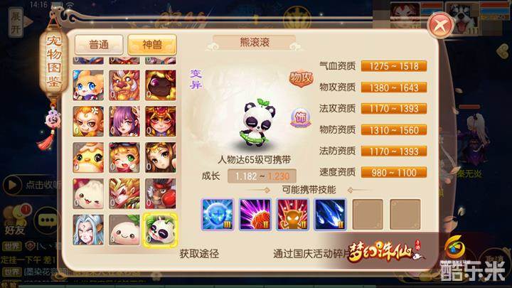 作为物攻型宠物,“熊滚滚”的资质确实能够让我们眼前一亮:1643的上限值甚至超过了3阶神兽的资质,虽然气血、双防资质低下但不会产生多大的影响,因为只要打造成隐攻宠这些问题就都不复存在了。