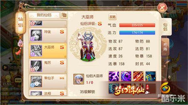作为S级的仙侣,大巫师拥有超越其他以控制为主仙侣的天然优势属性,高额的物攻和法攻能让大巫师在PVP和PVE中打出可观的伤害,充足的的法力也有利于大巫师控制住敌人,在战斗中不断限制敌人的输出,为其他仙侣提供打伤害的环境。