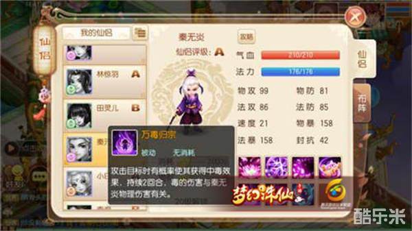 在万毒归宗的强力被动的加持下,秦无炎的所有攻击都有概率让敌方目标中毒,持续两个回合能不断削减敌人的血量,同时毒的伤害与秦无炎的物理攻击相关,能确保中毒的敌人长期处于高额减血的debuff状态下。