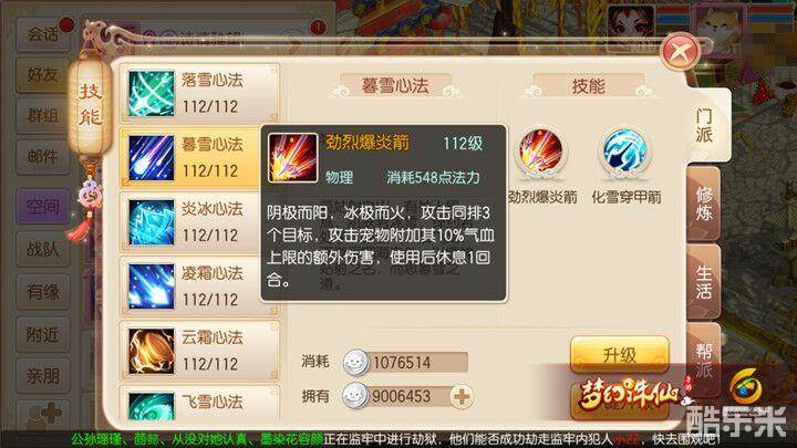 劲烈爆炎箭:阴极而阳,冰极而火。攻击同排3个目标,对宠物释放技能增加10%气血上限的额外伤害,使用后休息1回合。无论是PVE或者是PVP战斗,都是苍羽阁的核心技能。最为突出的就是对宠物的伤害加成,让苍羽变成最出色的清宝宝门派之一,100级以上的少侠可搭配轮回天书使用技能,对宠物的上限提升至20%气血上限的额外伤害,可谓是变态至极阿,全血宠物暴击也就gg了。