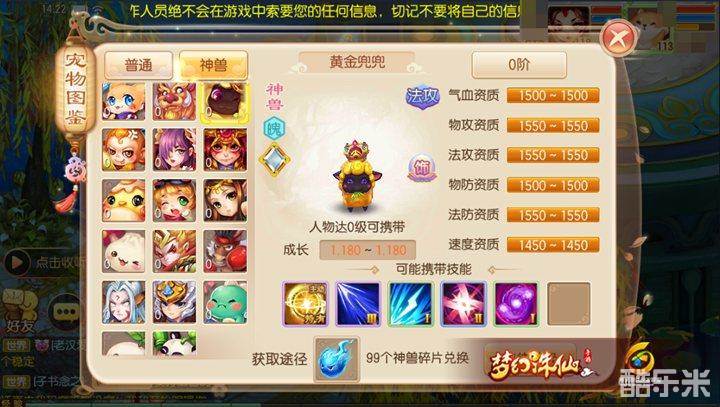 2)因为神兽的属性资质不俗,使得培养后能拥有可观的攻击数值,这时在学习一些增伤技(诸如怒火、法伤、法连)后就能在PVE玩法中拥有极佳的清怪效果,并且在竞技对抗中也能对目标造成实质性伤害;
