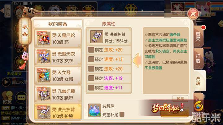 2)魂属性方面选择了法攻+速度的搭配路线,获得的80点法功以及13点速度加成确实可观;
