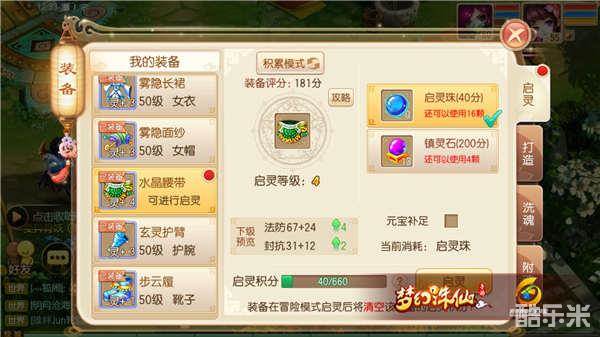 1.玩家务必要知道自己装备所需的攻击力、防御力、气血上限、魔法值上限,启灵的数字越高,增加的属性也就越强。