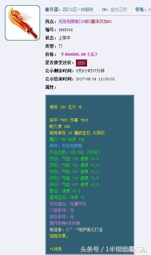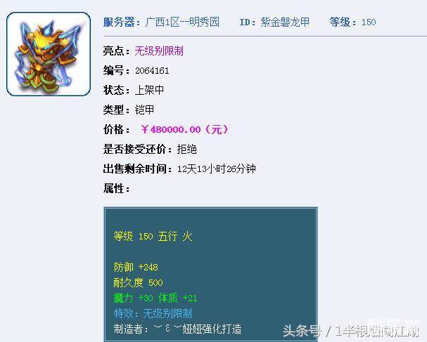 最后编辑于7年前梦幻西游,自2003年公测开始,至今为止,仍旧受到多数的玩家追随,当然,一个游戏能够发展至今,大多数玩家已经玩的不是游戏,而是情怀,逝去的青春。一梦数几年,甚至一梦十年的梦幻西游玩家比比皆是,他们目睹了一个曾经鼎盛的游戏的发展与繁衍,当然包括其中一部分装备的物价,从当初的万元不到,直接飙升到三万元不止。 藏宝阁据小编回忆,在08年的时候,那个时候700伤的无级别刀剑价格是一万元左右,而一直到今天,价格早已超过三万元。当然还不仅如此,数年前上十万的装备已经是天价了,而如今例如梦幻第一89大唐王谢随手一把无级别就是百万元以上。中期的梦幻而接下来,小编就带领大家盘点一下那些50万元的装备吗,是什么样子的呢!