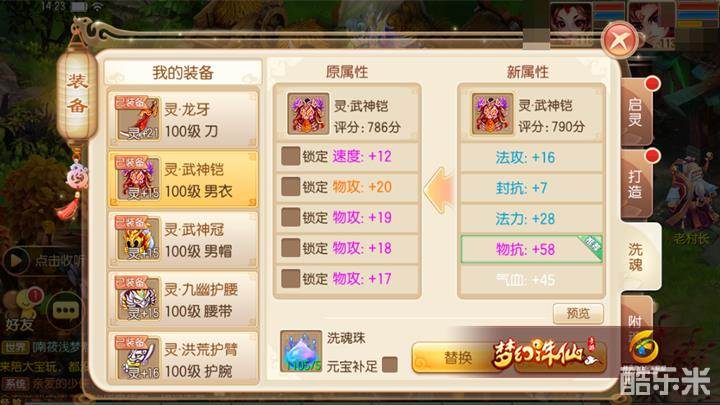 最后要说的就是关于装备启灵,诚然通过启灵可以大幅度提升装备的灵属性值,但启灵具有等级越高收益越低的特质,所以考虑到物防属性的实战作用个人建议当衣服启灵到15之后就可以放缓节奏了,而这时将资金转投到灵石的锻造亦能带来不低的收获。