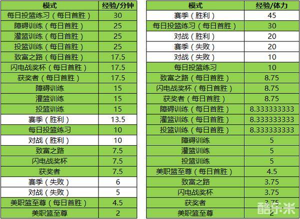 (左图为平均每分钟获得的经验,右图为平均每点体力获得的经验)