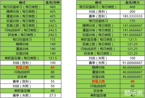 与获得经验相同,在有充足体力的情况下只要按照左表的顺序选择项目就能达到最快的金币获得速度;而如果在体力不多的情况下则可以按照右表的顺序来。