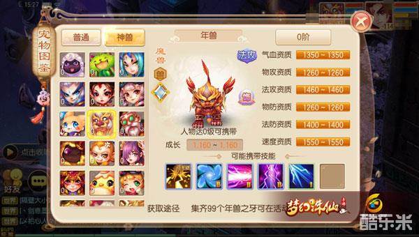虽然年兽被定义为了“法攻”宠,但我们可以发现它的法攻资质并不高,且法伤型宠物只适合在PVE玩法中作清怪之用(大部分人已培养了成品朱雀),自然让年兽走法伤路线肯定不合适!不过说到法功型宠物,另一种培养方案就是走状态路线,毕竟在竞技对抗中状态宠的限制效果极佳,因此速度资质极高的年兽走状态流极其合适。