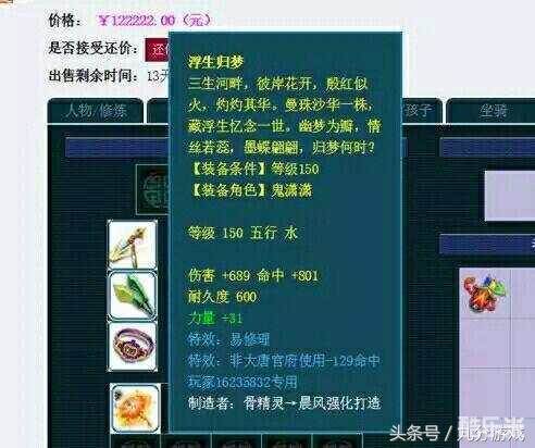 梦幻西游全服最高伤150武器,初伤近1000,CBG直接标价12万元!