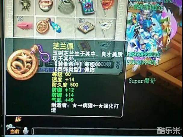 五开当托,第一次制作灵饰,60级配饰,主属性速度加14,下排两防御加12,14,一气血加49.