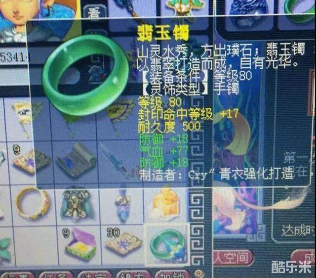 副本积分换的玲珑宝图,玩出一本80级手镯制造书,秒快晶石打了去,鉴定之后,还行吧,主属性封印命中加17,下排两防御加18,18,一气血加77,这比制造书升值几百倍的把。