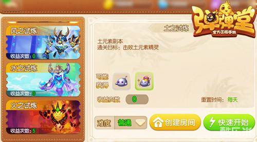 被堕落元素领主占领的场景,在负向元素之力辐射下,转化为“精灵洞穴”“无尽天池”“火山之心”“风暴祭坛”与地水火风元素相对应的试炼副本。《弹弹堂手游》元素试炼副本,难度比之以往是呈几何趋势递增,策略、宠物、队友配合等因素缺少一个,玩家都将被元素领主所吞噬!