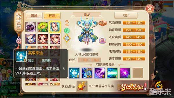 《梦幻诛仙手游》神兽青龙特性解析 如何培养成给力物攻宠