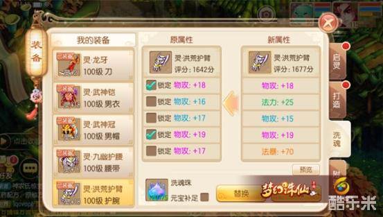 最后要聊的则是洗魂内容:虽然魂属性加成量不及启灵,但也能给装备带来可观的增幅,所以在打造时应有所追求。不过魂属性值是与装备等级挂钩的(等级越高加成越多),对于护腕来说个人从收益角度给出的建议是到达百级之后再弄一套高品五魂,毕竟百级装备将会陪伴我们很长时间。