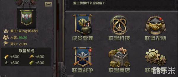 5、联盟加成。联盟等级越高,资源加成越高。如果你不是人民币战士,加入一个等级高的联盟,享受联盟加成和联盟帮助,是提升战力和囤积资源一个很好的途径。