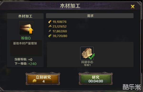 6、科技研究。修复可以中心之后,可以做资源方面的研究,虽然说不能直接产出资源,却可以辅助增加基地资源产量。