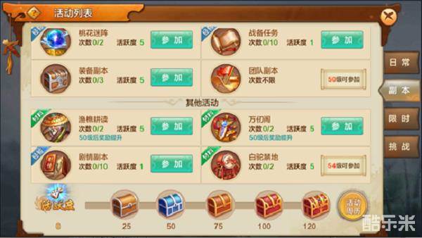 在进入游戏后,随着主线任务的完成,等级也会跟着提升,虽说等级提高,升级的速度会变慢,但是这时候会开启各种玩法,比如桃花迷阵,刚开启时通关一次那升级速度跟飞一样。不过这次主要说的不是这个,而是材料副本。
