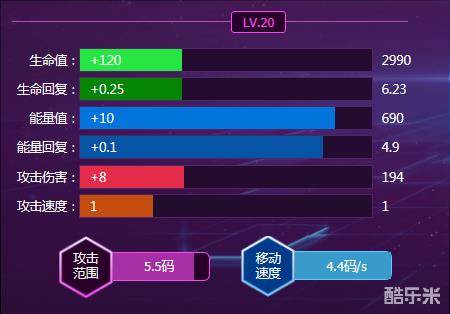 从图中我们可以清晰的看到,5.5码的射程和20级194的平A伤害,这其实是不低的,在技能CD期间,合理的利用减速效果并且走A,也是可以造成不俗的伤害的,千万不要养成“我是一个法师,我只要甩甩技能就好了”的习惯。