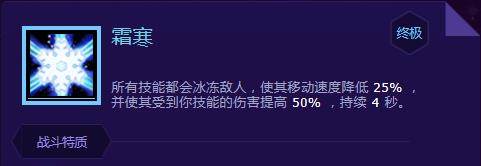 3.霜甲术(特质):攻击你的敌方英雄会被冰冻。除此之外,每8秒你可以格挡一次来自英雄的普通攻击,使其伤害降低75%。