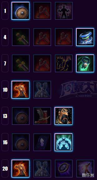 相比于另外两个天赋,强壮的奥拉夫不仅能够提高前期分线操作的容错率,还能在前中后期团战中发挥作用,非常适合这套R1全主动天赋的点法。