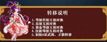 玩家需要留意的是,被转移的武将以及接受转移的武将,最低也需要是初始六星级别哦。