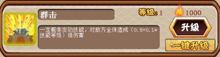 群击:一定概率发动技能,对敌方全体造成(0.8+0.1x技能等级)倍伤害。
