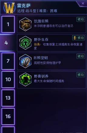 4级天赋必点野兽驯养,这是一个高风险高收益天赋,有这天赋你就可以有菠萝的血量,牛的控,还会自己加血,可骚扰对面后排可保自己后排,死了也不会很亏,二十秒后又是一条好熊,但是绝对不能死,中后期死一次这局就等队友carry吧。