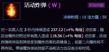 热能对流:烈焰风暴每击中一名敌方英雄,伤害提高5点,最多可提高100点。死亡移除所有伤害加成。伤害加成累计至100点时,烈焰风暴的伤害额外提高50点,且死亡时不会移除伤害加成。(点评:能叠到100点(Q中20次)的伤害收益非常高,但这之前一定要足够的猥琐,叠满之前死一次就前功尽弃了)