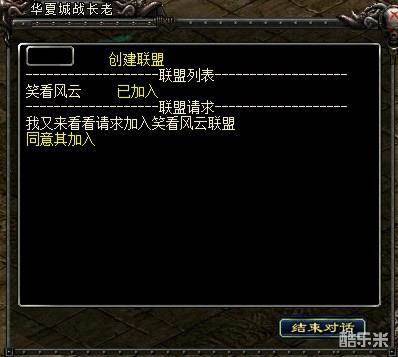 E.成功申请后,创建该联盟的氏族长会收到联盟请求信息,如果同意其加入则点击“同意其加入”按钮即可。