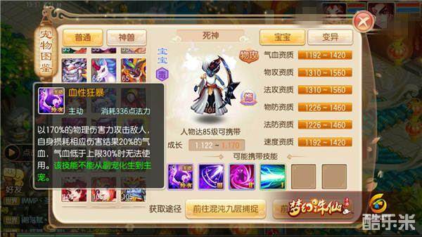 血性狂暴:这个技能是死神的主要输出技能,在培养时一定要将它铭记,防止丢失。但是如果小伙伴要将死神培养成隐攻宠,那么“血性狂暴”这个技能可以将它放弃换成“隐身”但是培养隐攻宠对资源的需求量很大。