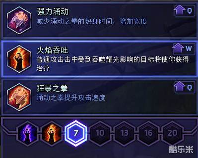 第三个天赋看似不起眼,其实很大程度上提高了古加尔的回复能力,让他在兵线上可以赖更久,减少了对治疗的依赖,大大提高了续航能力。