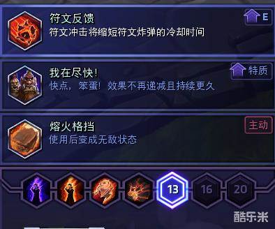 13级一般选熔火格挡,这算是现在最强的冰箱······或者说“火箱”。古加尔因为代表着两个人头,往往会成为优先集火对象,一个无敌对于自保来说非常重要。并且在无敌状态下还会持续灼烧附近敌人,伤害大约是盛燃之怒的5倍,如果对手傻傻地围在你身边等你出来,你就相当于又打了一个AOE技能。
