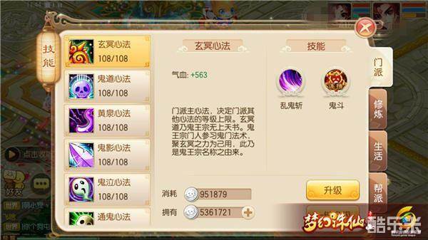 玄冥心法:增加气血值,包含技能乱鬼斩,鬼斗。