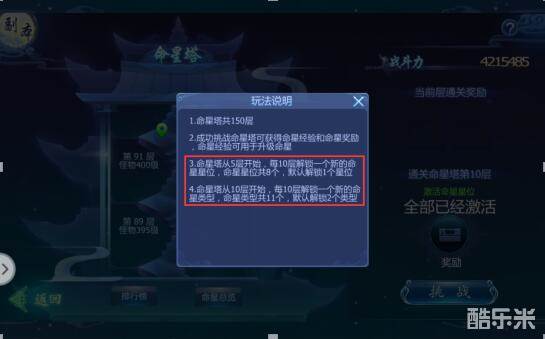 仙友命星塔达到90层后即可解锁11种命星类型并且已经开启8个星位。仙友可以通过命星塔和占星系统获得命星,不同的命星会有不同的效果: